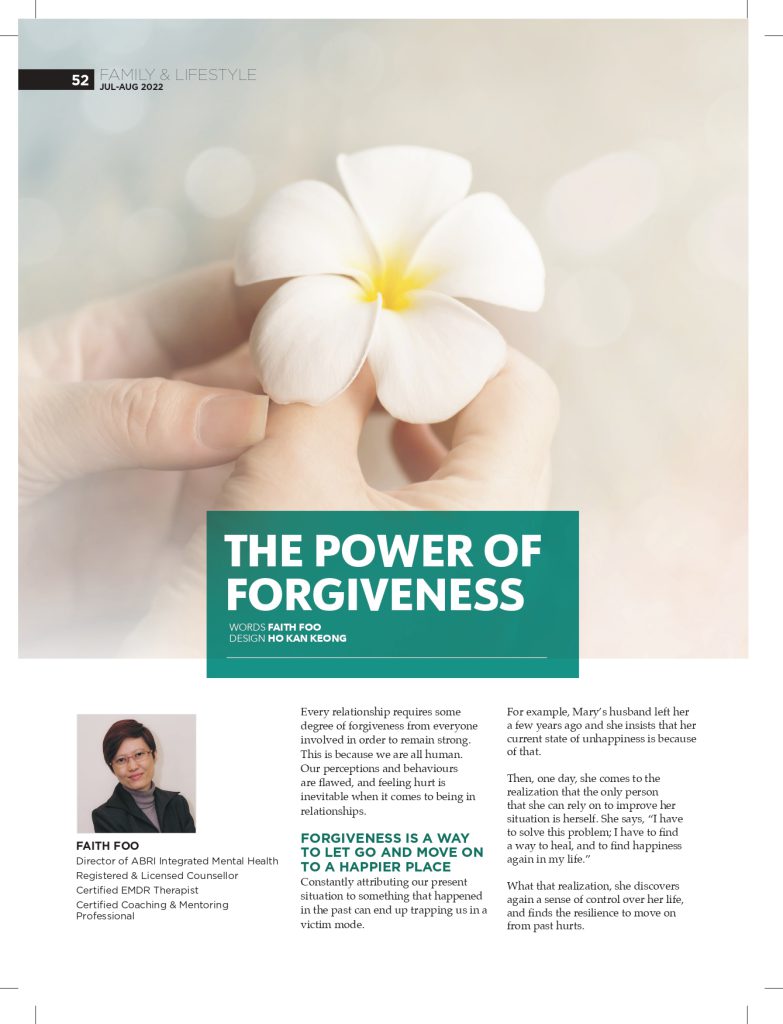 That’s what forgiveness really is about. By embracing forgiveness, we can also embrace peace of mind, hope, and control of our life.